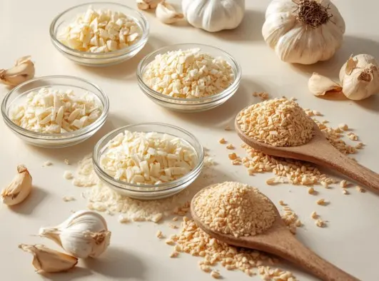 Sourced from premium garlic bulbs, our Dehydrated Garlic offers intense flavor, consistent granule size, and excellent solubility — a top choice for ready-mixes, condiments, and sauces.