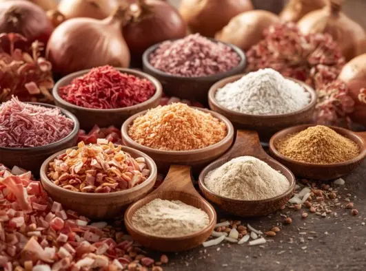 Our Dehydrated Red & Pink Onion range is processed from hand-selected red onions known for their deep color and tangy-sweet balance — perfect for curries, sauces, and snack seasoning.